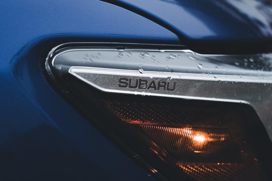 The Outback’s power windows, door locks, and adjustable mirrors are also essential controls. Understanding the operation of the X-MODE system, designed for enhanced all-wheel-drive performance in challenging conditions, is vital. The manual details the location and function of all controls, including those related to safety features like EyeSight. Proper use of these features maximizes comfort, convenience, and safety while driving.