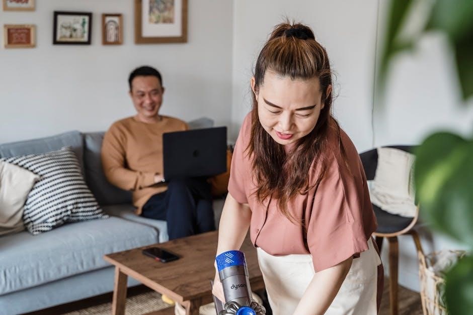 Post-Emptying Check: After emptying, inspect the dustbin for any stubborn blockages or accumulated debris․ Wipe down the interior with a dry cloth if necessary․ Ensure the dustbin is securely reattached to the Dyson DC41 before resuming cleaning operations․ A full dustbin significantly reduces cleaning efficiency․