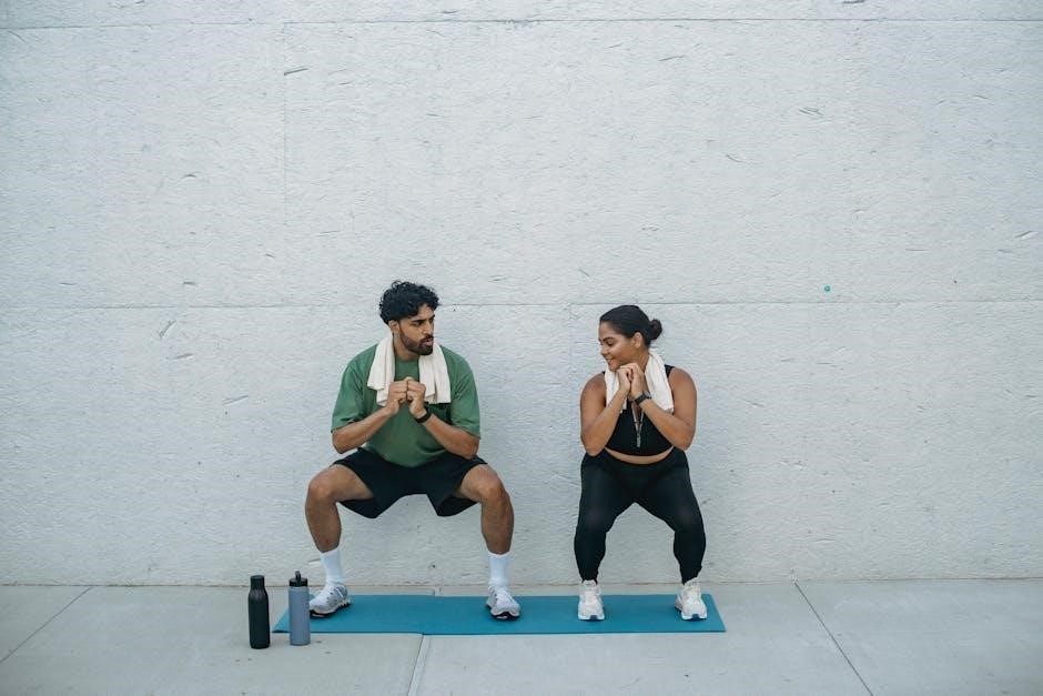 Gentle Strengthening: Mini-squats are a modified squat variation designed to strengthen the quadriceps‚ hamstrings‚ and glutes without placing excessive stress on the knee joint. This exercise is crucial for rebuilding lower body strength during Osgood-Schlatter recovery.